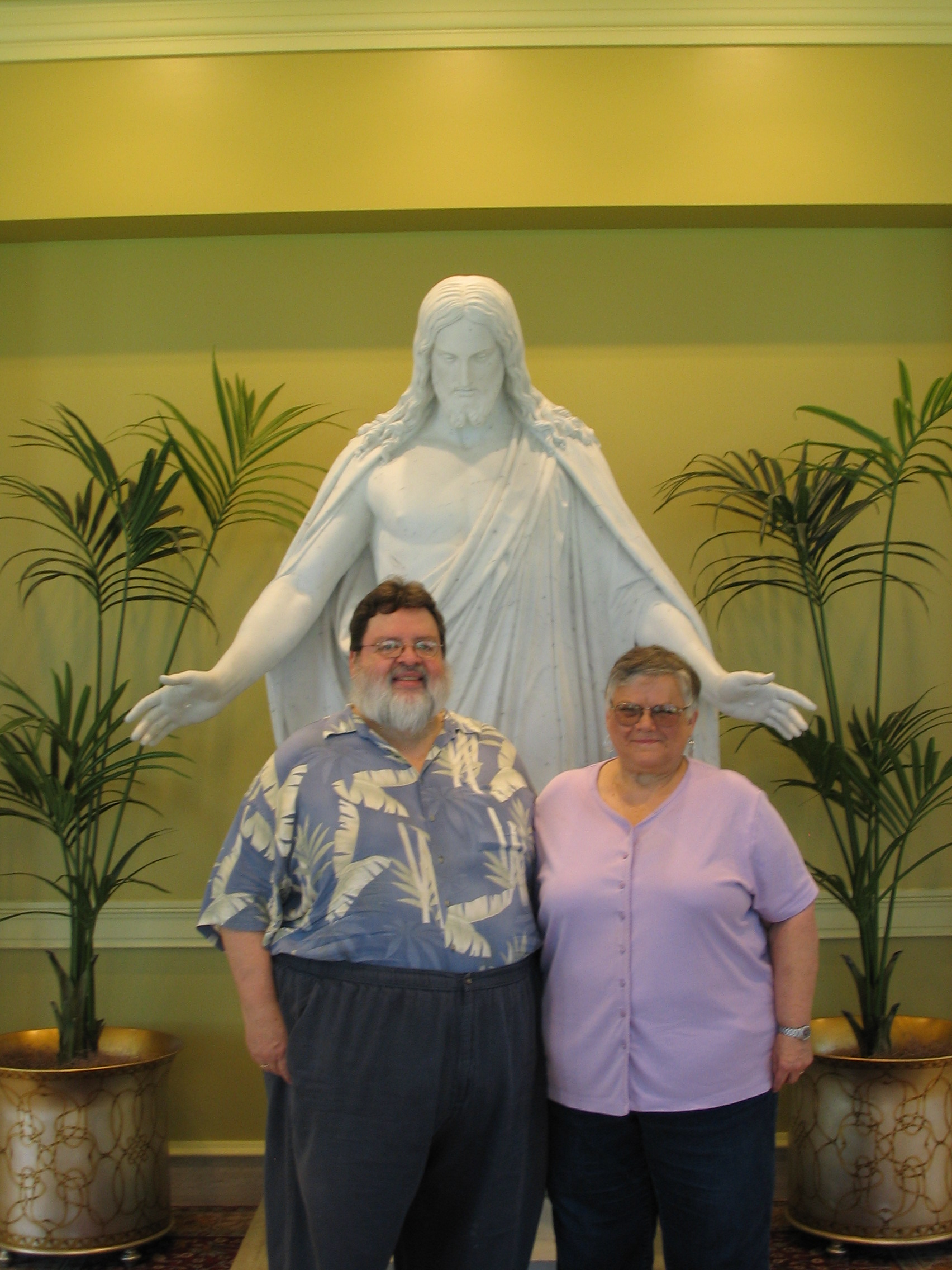 We arrived early for our 8:45 a.m. appointment. We were directed to a visitor’s center across the street from the temple. There we were shown a 10 minute film extolling the virtues of Mormonism, especially emphasizing the idea of families being together for eternity. Then our group (about 20 people) were led across the street to visit the temple itself. (Pictured above you see Sue and me inside the reception area, at the end of our temple visit in Philadelphia.)