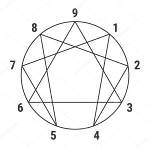 The word Enneagram itself is derived from the Greek words for “nine” and “writing” or “drawing.” So the Enneagram is literally a figure consisting of nine drawn lines. The Enneagram is a complex, intriguing diagram. It consists of a circle with the numbers 1-9 evenly spaced around it. The numbers 3, 6 and 9 are joined by an equilateral triangle. Numbers 1, 4, 2, 8, 5, 7, and then 1 again are connected to form a symmetrical hexagram form.
